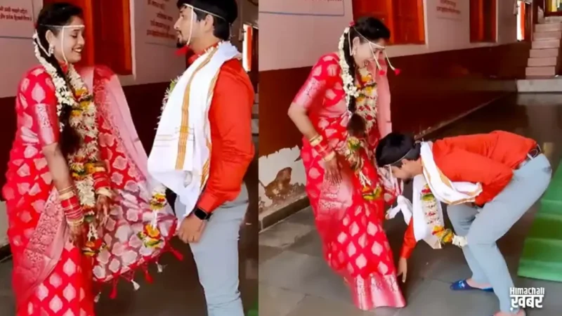 वीडियो में देखा जा सकता है कि दूल्हा दुल्हन शादी के बाद एक दूसरे के साथ खड़े हैं। सबसे पहले दुल्हन हमेशा की तरग दूल्हे के पैर छूने के लिए नीचे झुकती है। लेकिन दूल्हा उसे ऐसा करने से रोक देता है। इसके बाद दूल्हा खुद नीचे झुककर अपनी बीवी के पैर छूता है। दूल्हे की इस हरकत के बारे में खुद दुल्हन ने भी नहीं सोचा था। दूल्हा जैसे ही उसके पैर छूता है वह डर जाती है और हवा में दो फीट ऊपर उछल जाती है। शायद वह भी नहीं चाहती थी कि दूल्हा उसके पैर छूए।