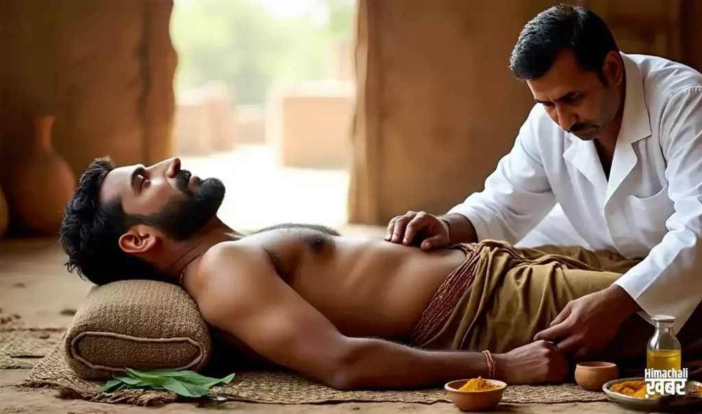 - ज़मीन पर दरी या कम्बल बिछा ले। अभी बच्चो के खेलने वाली प्लास्टिक की गेंद ले लीजिये। अब उल्टा लेट जाए और इस गेंद को नाभि के मध्य रख लीजिये। पांच मिनट तक ऐसे ही लेटे रहे। खिसकी हुई नाभि (धरण) सही होगी। ये खबर आप हिमाचली खबर में पढ़ रहे हैं। फिर धीरे से करवट ले कर उठ जाए, और ओकडू बैठ जाए और एक आंवला का मुरब्बा खा लीजिये या फिर 2 आटे के बिस्कुट खा लीजिये। फिर धीरे धीरे खड़े हो जाए।