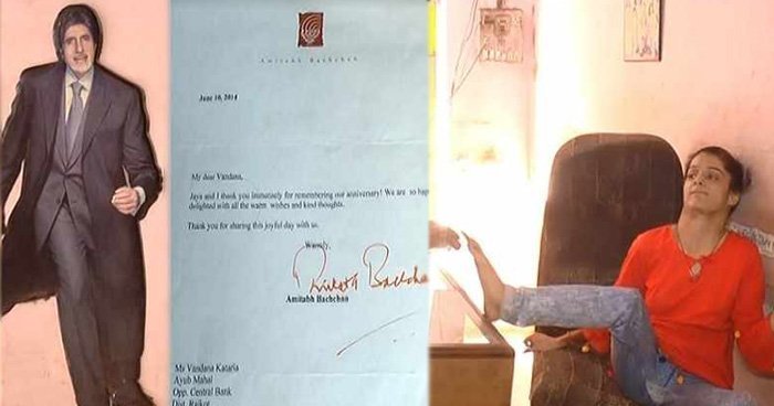 वंदना की मां कहती है कि उनकी बेटी अमिताभ बच्चन की बहुत बड़ी फैन है, जिसकी वजह से वह उन्हें खत लिखती है और उधर से जवाब भी आता है। इतना ही नहीं, खुद अमिताभ बच्चन वंदना का हाल चाल पूछते रहते हैं। वंदना ने एक दिन अमिताभ बच्चन से मिलने के लिए घंटो धूप मेंं बिताए और बाद में बेहोश हो गई। वंदना की मां कहती हैं कि उनकी बेटी मरने से पहले एक बार अमिताभ बच्चन से मिलना चाहती है, क्योंकि वह बहुत बड़ी फैन है। बता दें कि वंदना ने अमिताभ बच्चन की मार्केंट में मिलने वाली तमाम चीज़ों को संभाल कर रखा है।